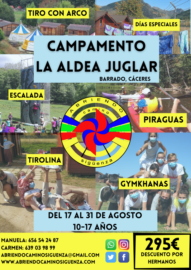 Ya está abierto el plazo para inscribirse en el campamento de “Jaume I” que será del 17 al 31 de agosto en Alcocéber (Castellón). Sólo tienes que rellenar la inscripción y enviarla al email abriendocaminosiguenza@gmail.com junto con la confirmación de pago o justificante de transferencia.